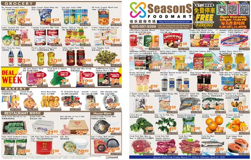 Welcome to Tiendeo, your best option for finding the most outstanding offers, catalogs, and promotions for Grocery in Brampton. During March 2026, on our platform, you can discover the latest deals from Seasons foodmart, one of the most popular brands in the Grocery sector in Brampton.
